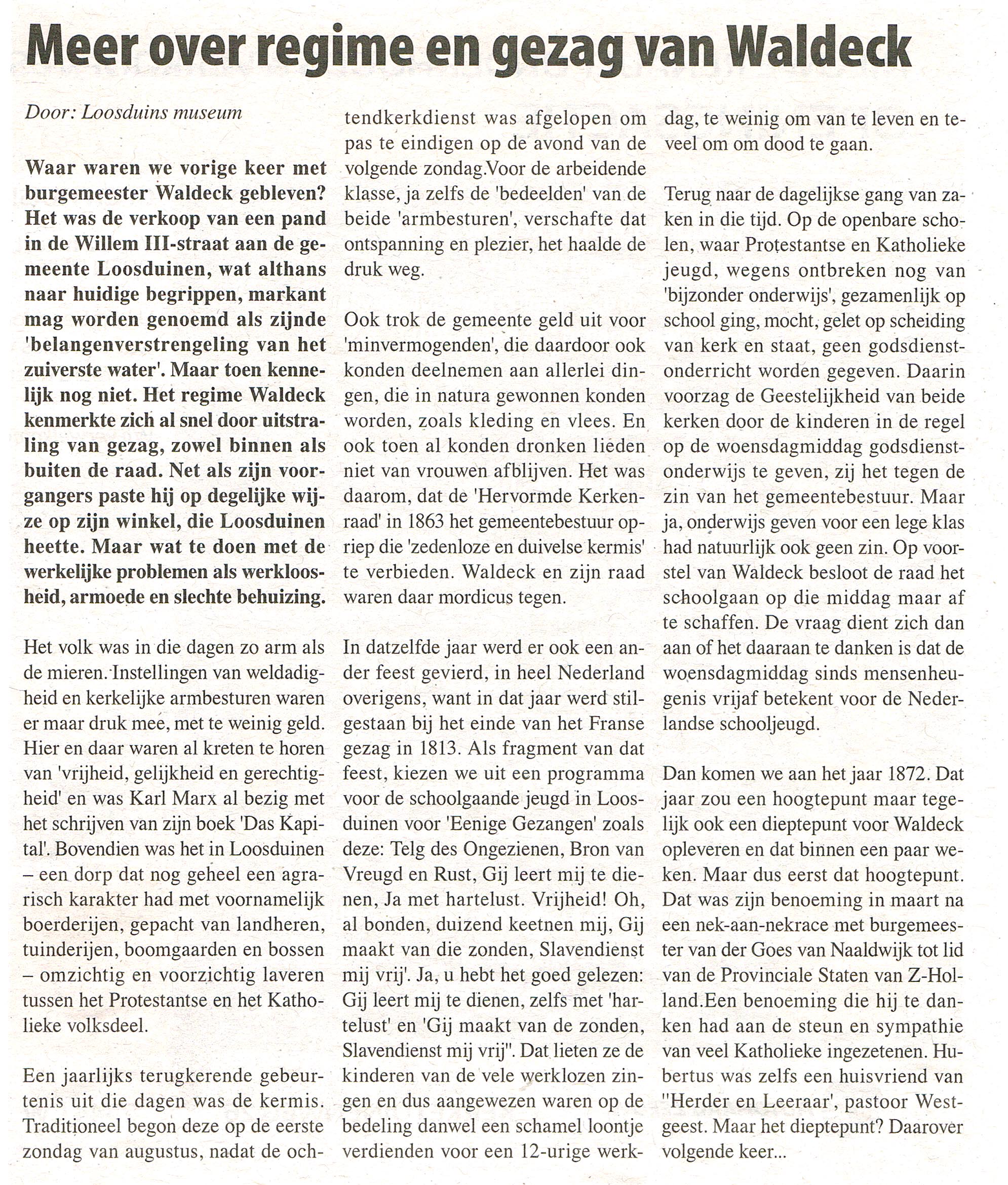 De historici van het Loosduins Museum leveren tweewekelijks een interessante column aan de Posthoorn.
